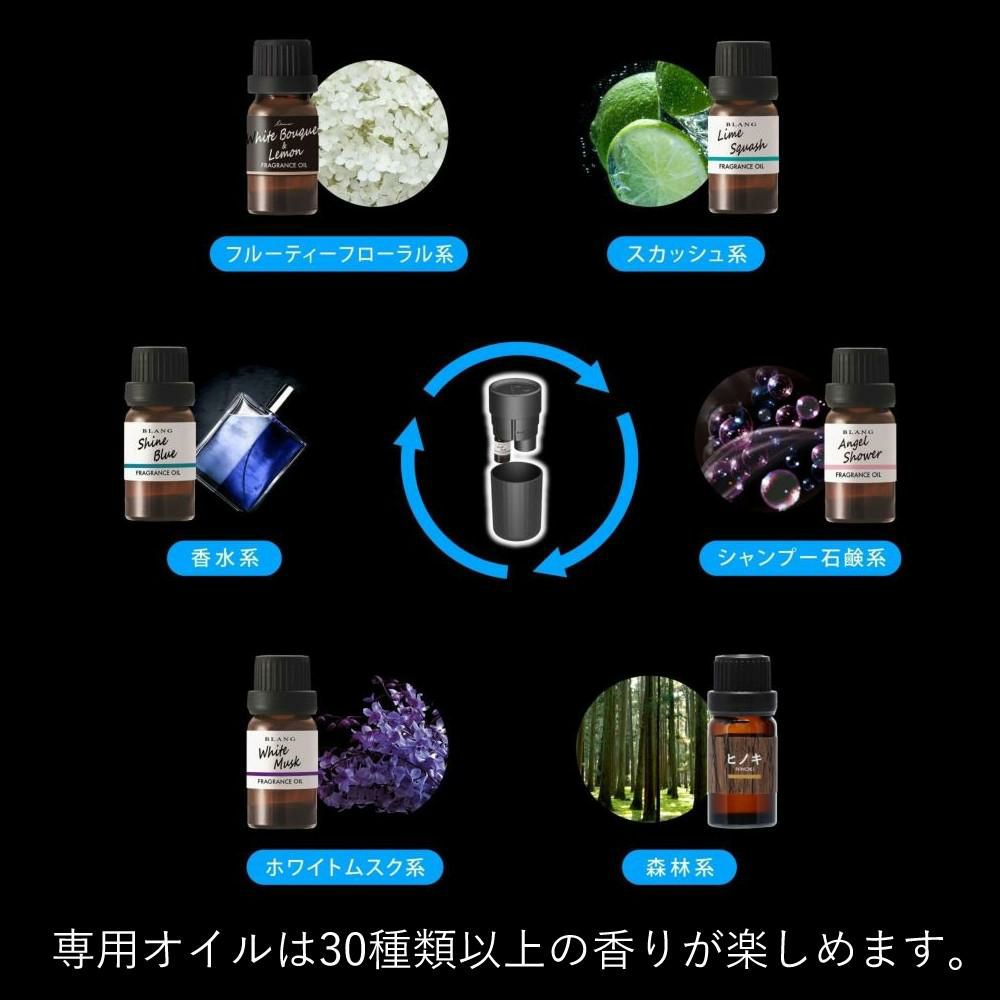 従来の芳香剤に比べ、フレグランスオイルがなくなるまで、均一の香りの強さが持続します。