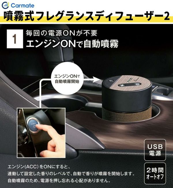 1)カーメイト アロマディフューザー 噴霧式フレグランスディフューザー2 ブラウン L10006
