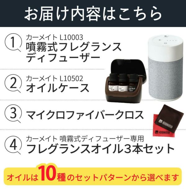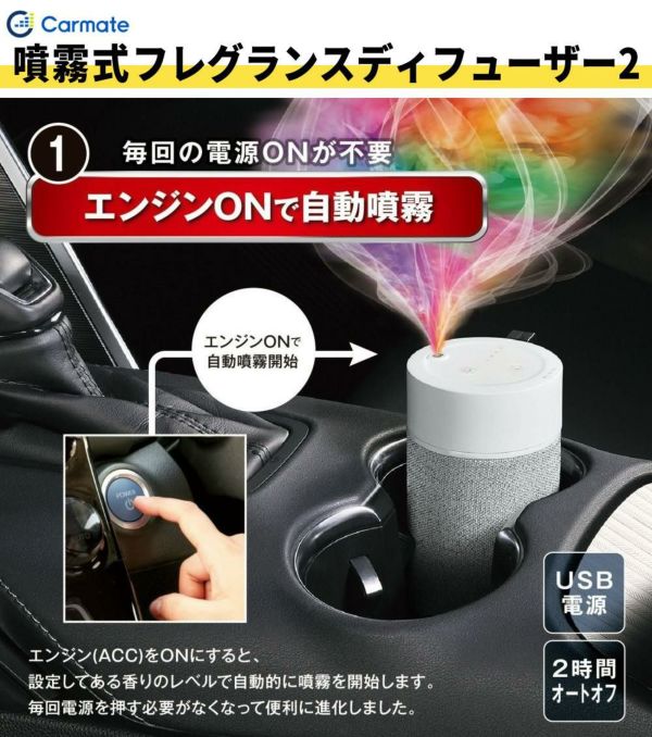 1)カーメイト アロマディフューザー 噴霧式フレグランスディフューザー2 ライトグレー L10003