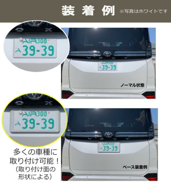 ナンバープレートを車体に取付けた状態でも装着できます。