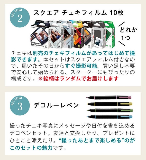 | 2)チェキ スクエアフィルム 10枚 (絵柄ランダム) |