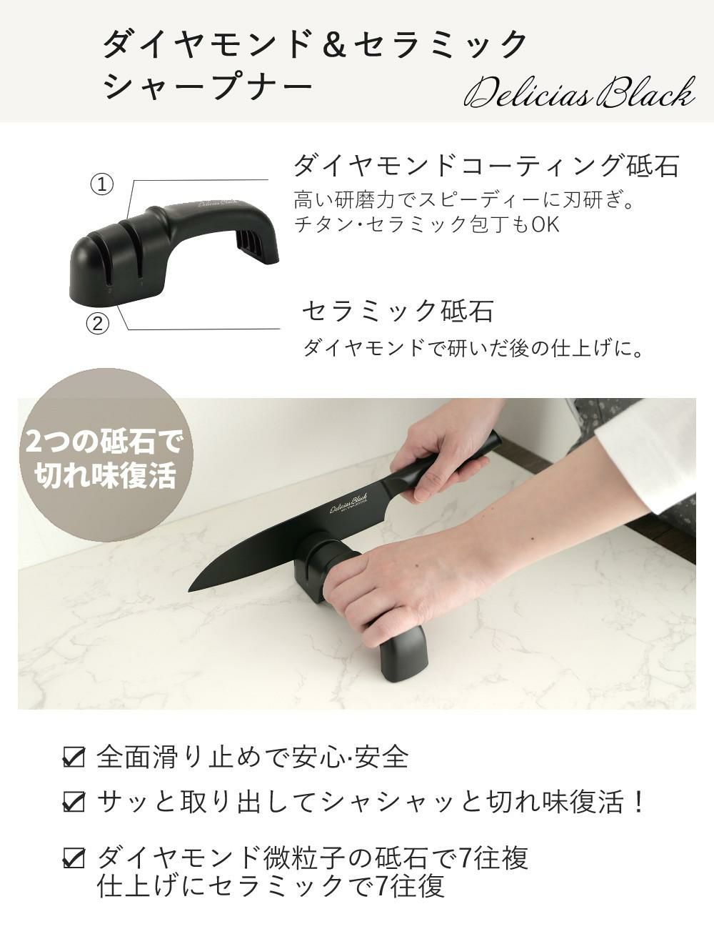 カクセー デリシアスブラック ペティナイフ DEL-07 貝印 まるいまな板 ブラック M AP5334 シャープナー DEL-08 3点セット 包丁セット キッチン用品 調理器具