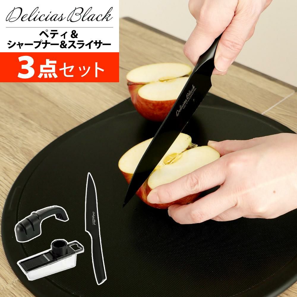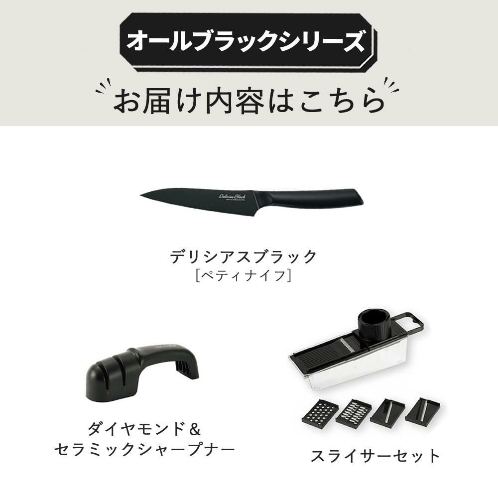 カクセー デリシアスブラック ペティナイフ DEL-07 シャープナー DEL-08 スライサーセット DEL-09 3点セット 包丁セット キッチン用品 調理器具 軽量 贈り物