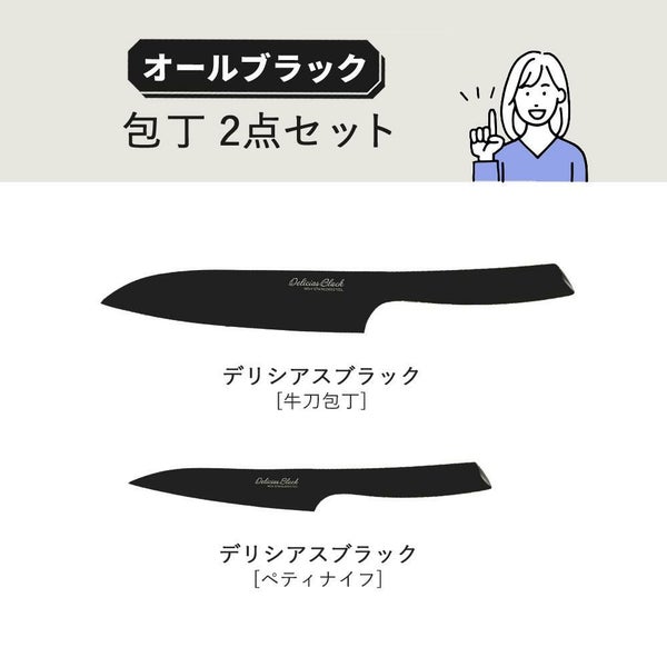 カクセー デリシアスブラック 牛刀包丁 DEL-06 ペティナイフ DEL-07 2点セット 包丁セット キッチン用品 調理器具 高級感 プロ仕様 軽量 切れ味抜群 贈り物