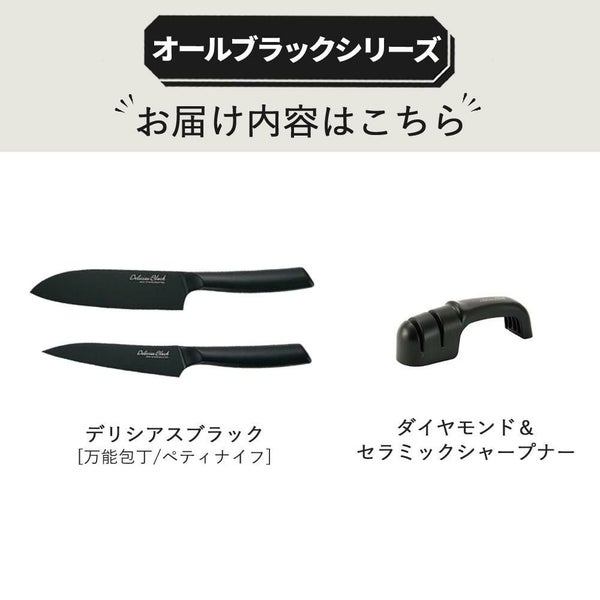カクセー デリシアスブラック 万能包丁 DEL-05 ペティナイフ DEL-07 ダイヤモンド&セラミックシャープナー DEL-08 3点セット 包丁セット キッチン用品 調理器具