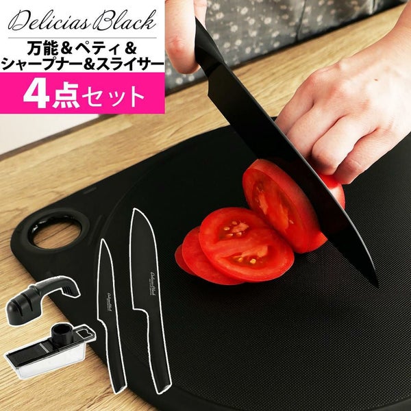 カクセー デリシアスブラック 万能包丁 DEL-05 ペティナイフ DEL-07 シャープナー DEL-08 スライサーセット DEL-09 4点セット 包丁セット キッチン用品 調理器具