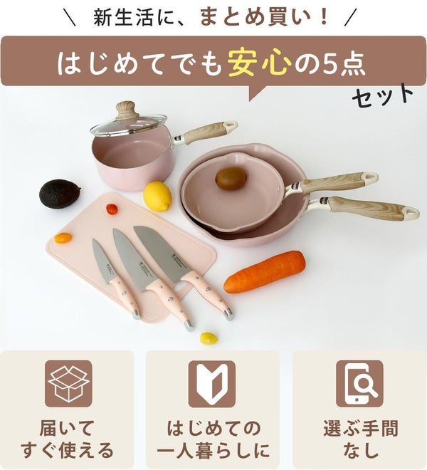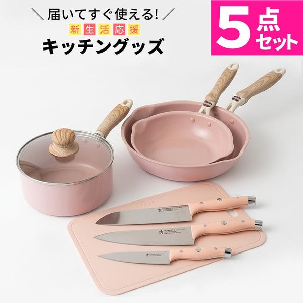 ピンク で 統一 された おしゃれ な キッチン セット は、三徳包丁 ・ 洋包丁 ・ ペティナイフ を 含む 包丁セット と セラミックフライパン 、ソースパン 、まな板 が 揃った 便利 な 調理器具セット です。IH対応 の フライパン は 遠赤外線 効果 で 美味しく 仕上がり、抗菌まな板 は 清潔 に 使えて 安心。日本製包丁 は 軽量 で エルゴノミックハンドル を 採用 し、毎日 の 料理 を 快適 に サポート。新生活 や 一人暮らし に ぴったり な コンパクト で 使いやすい キッチングッズ です。