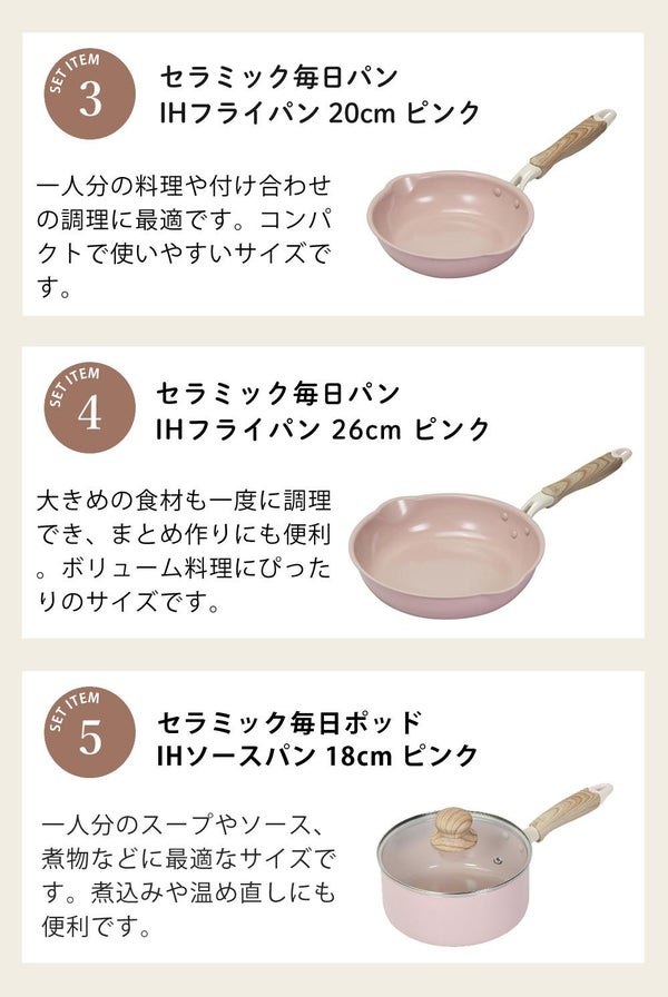 【セラミック IH フライパン20cm&26cm/ソースパン 18cm】