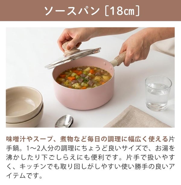 (4) セラミック毎日ポッド IH ソースパン 18cm NQ-436 ピンク