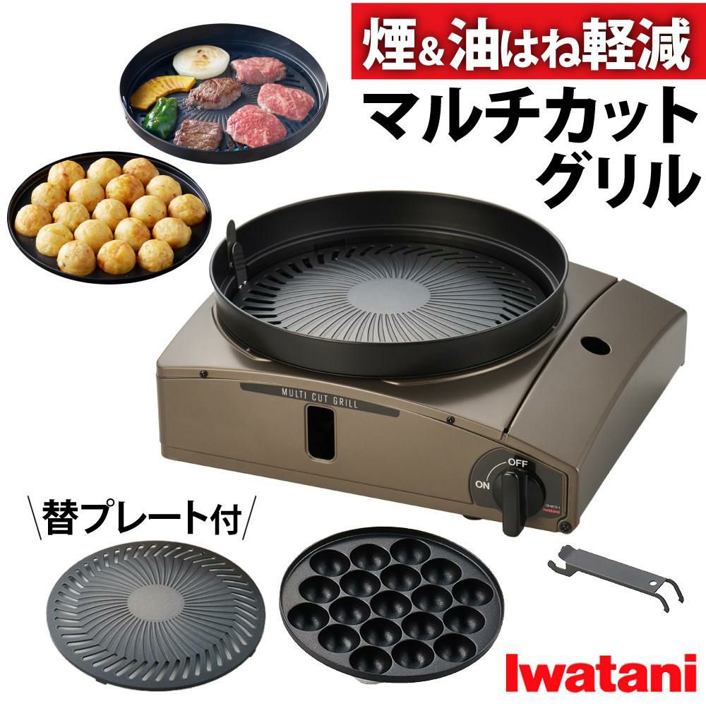 コンパクトなデザインで少ない人数におすすめ 長時間の 焼肉でも 途中でキレイなプレートに交換 さらに においや煙を抑える イワタニ カセットコンロ カセットフー マルチカットグリル ブラウンゴールド CB-MCG-1
