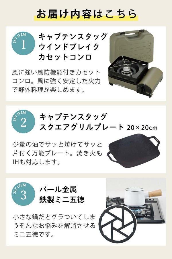 1)キャプテンスタッグ ウインドブレイク カセットコンロ〈ジュニア〉(UF-31)