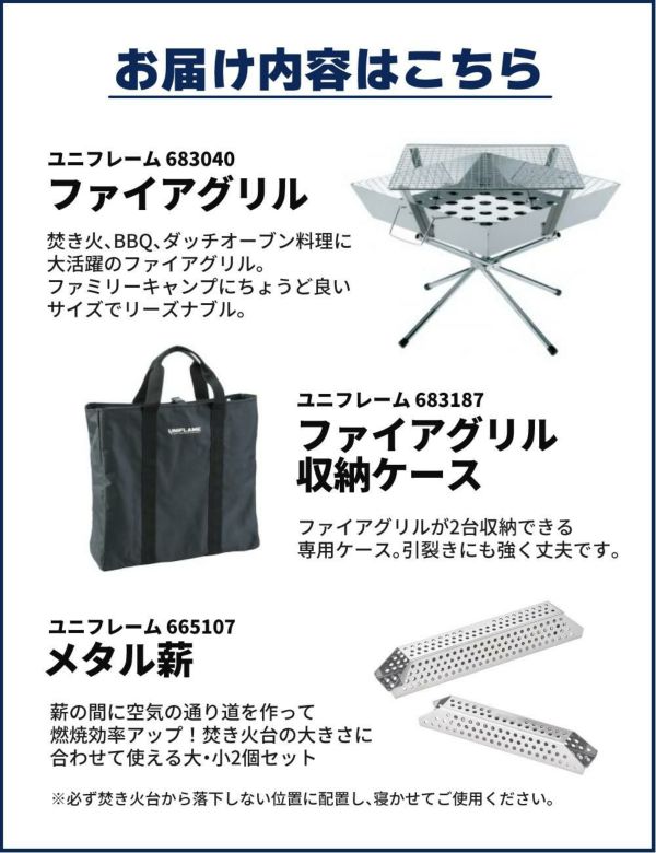 ● 大・小サイズを両方使う場合はファイアグリル、薪グリルII、薪グリルIIラージにピッタリ