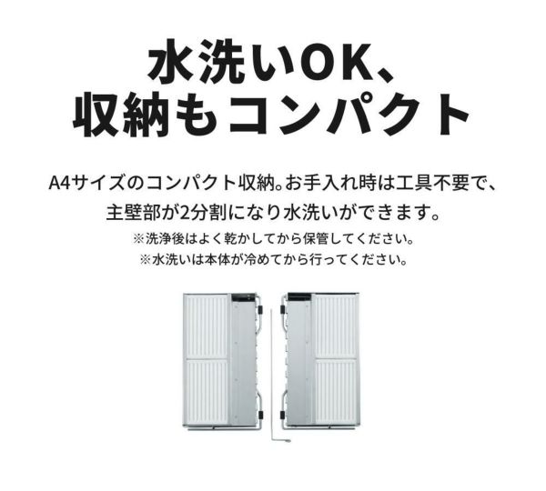 工具不要で主壁部が2分割になり、水洗いできます。洗浄後はよく乾かしてから保管してください。