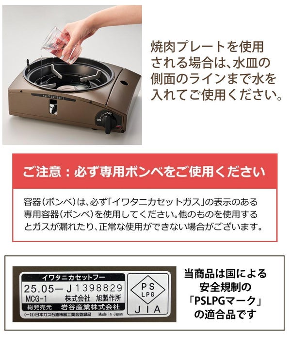 ・焼肉プレートを使用される場合は、水皿の側面のラインまで水を入れてご使用ください。