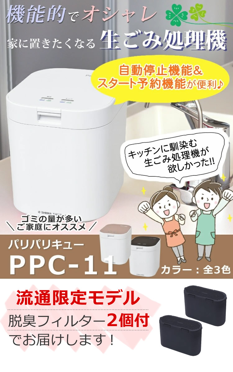 ・バスケット用水切りネット 15枚/袋 ・脱臭フィルター(PPC-11-AC33) 2個 (フィルター交換目安:4~9ヶ月) |