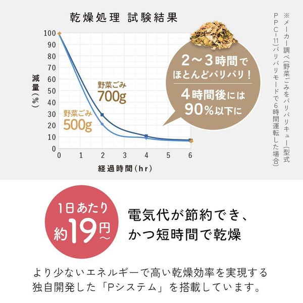 生ゴミには水分が多く含まれているため、温風で乾燥させる事はとても有効で、約1/4の減容ができるため 有料ゴミ袋の節約になるところが最大のオススメポイント!