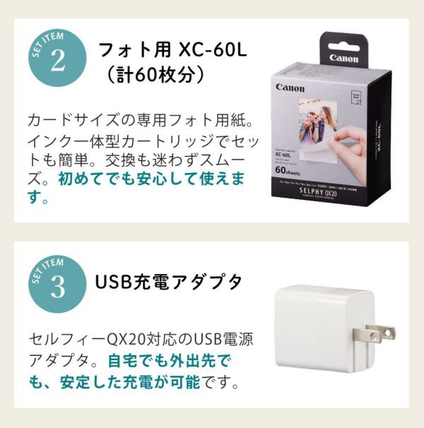 1)キヤノン フォトプリンター セルフィー QX20