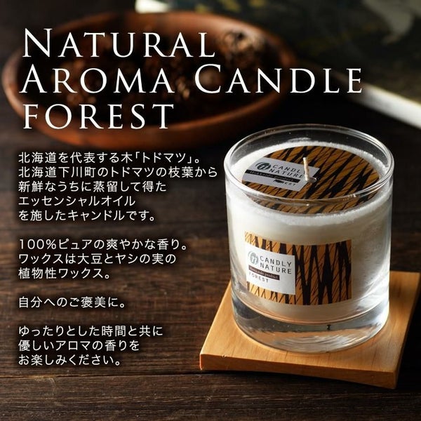 北海道の森を代表する木「トドマツ」北海道下川町のトドマツの枝葉から新鮮なうちに蒸留して得たエッセンシャルオイルを施したキャンドルとなります。
