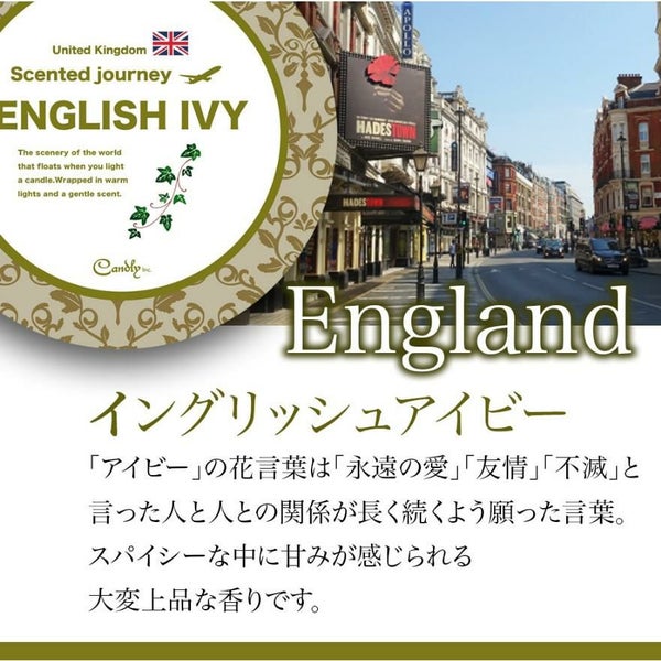 長持ち大容量の無添加ソイワックスにイギリス、インド、ハワイ。各国をイメージする香りを施したキャンドルとなります。