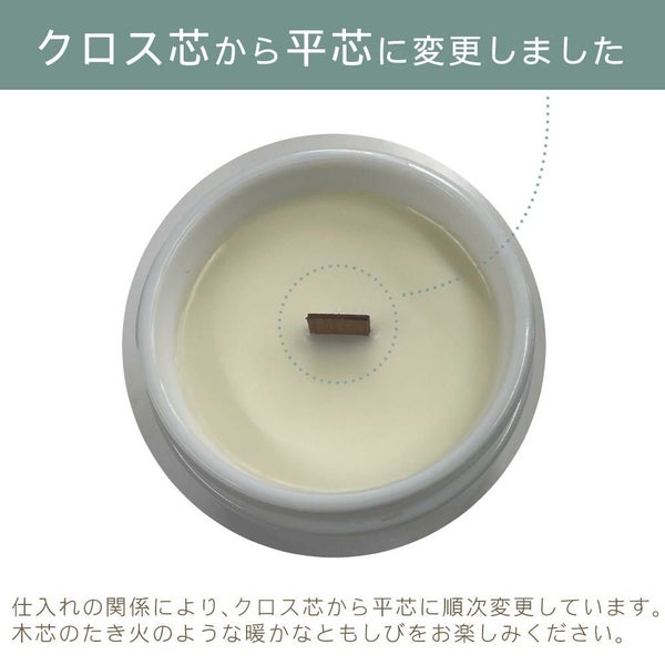 芯はウッドウィック を仕様(木芯)。火を灯すとまるで焚き火をしているような温かい光が灯り大変リラックス出来ます。