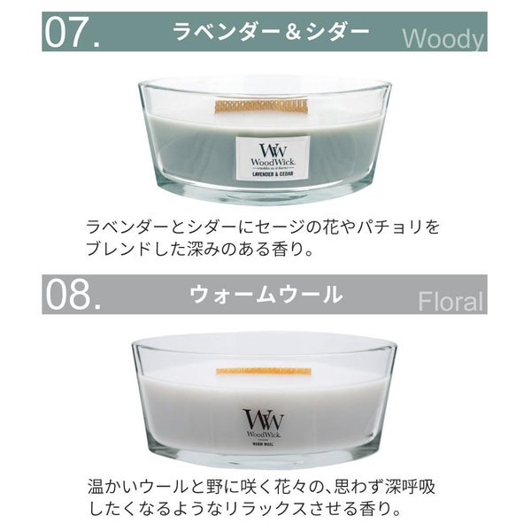1)アロマキャンドル WoodWick 専用箱入り ウッドウィック ハースウィックL ソイワックス(15種類から選択)