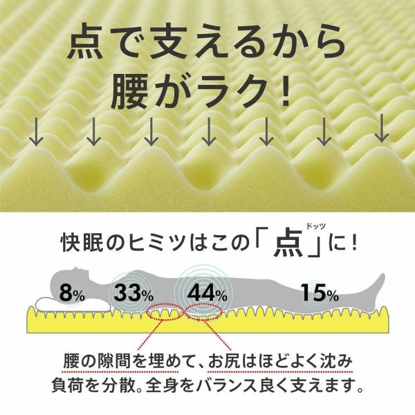 「Dotsヘルシーマットレス」は点で腰をやさしくサポートします。