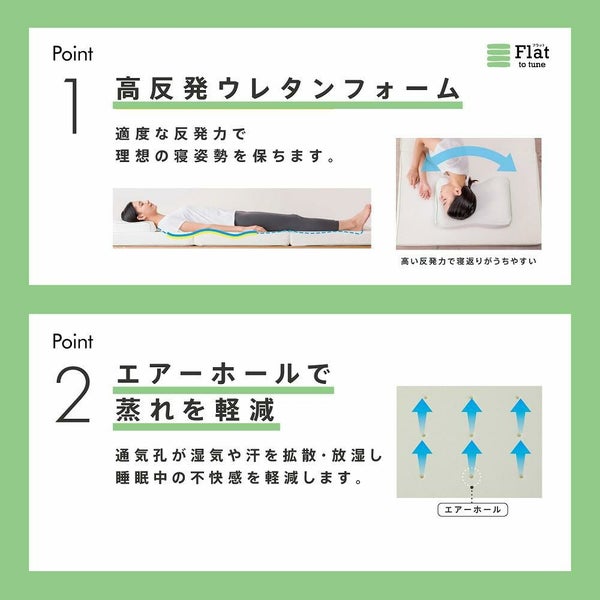 「Flatヘルシーマットレス」は寝姿勢を整え寝返りしやすい、高反発ウレタンフォームのマットレスです。