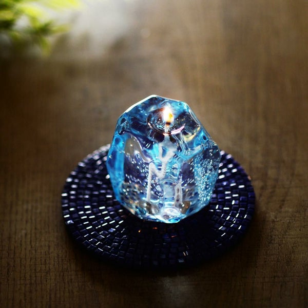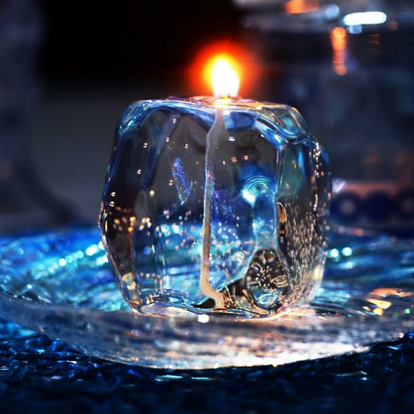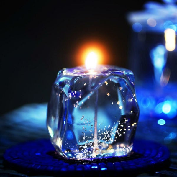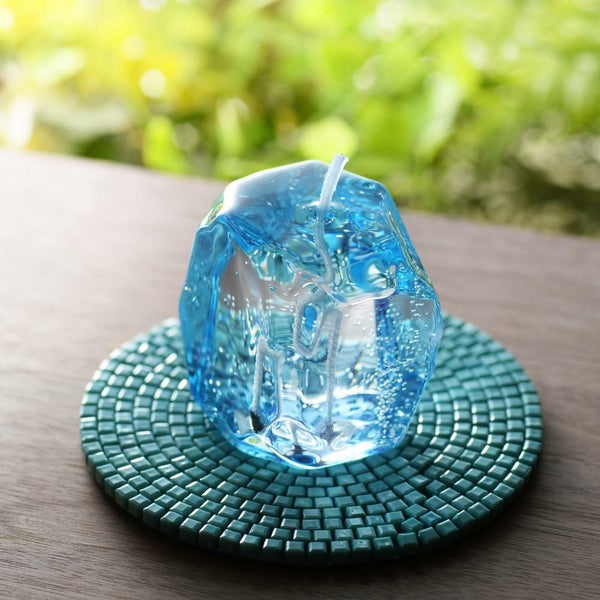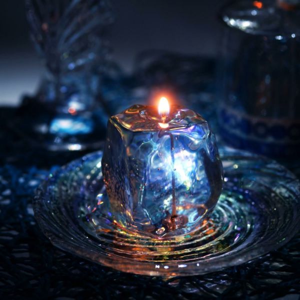 見た目は冷たい氷の様で触るとゴムの様に弾力がある不思議なキャンドル