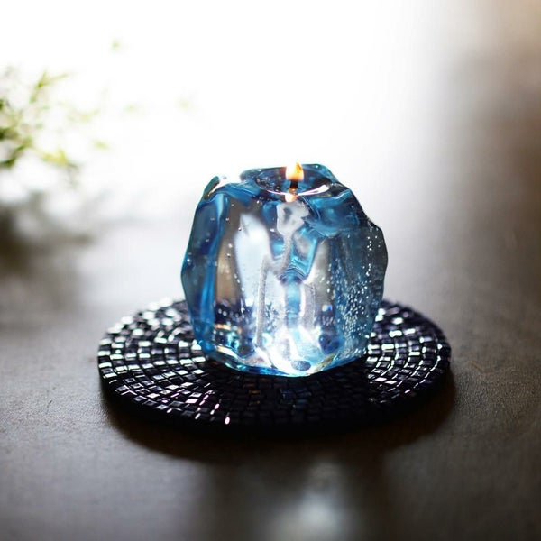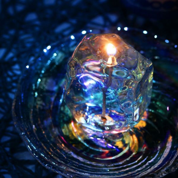 火を灯すとキラキラと輝く水面の様に幻想的な輝きを見せてくれます。