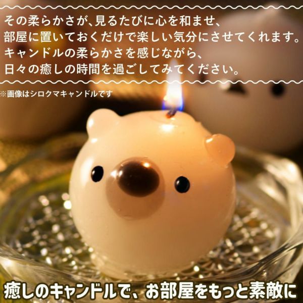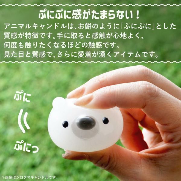 アニマルキャンドルは、お餅のように「ぷにぷに」とした質感が特徴です。手に取ると感触が心地よく、何度も触りたくなるほどの触感です。