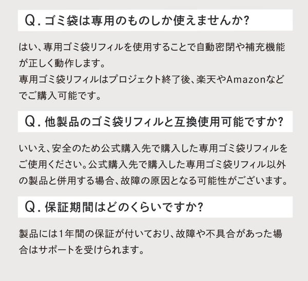 | 専用ゴミ袋 | 15リットル×約20回分 |