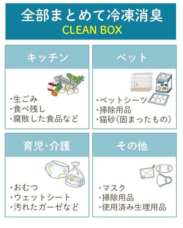 CLEAN BOXはマイナス11度で冷やすことで、臭いを根本的に凍らせます。
