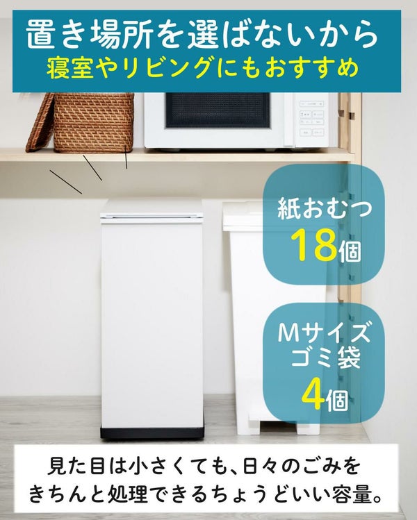 容量目安(約) オムツ×18個、Mサイズのゴミ袋×4個