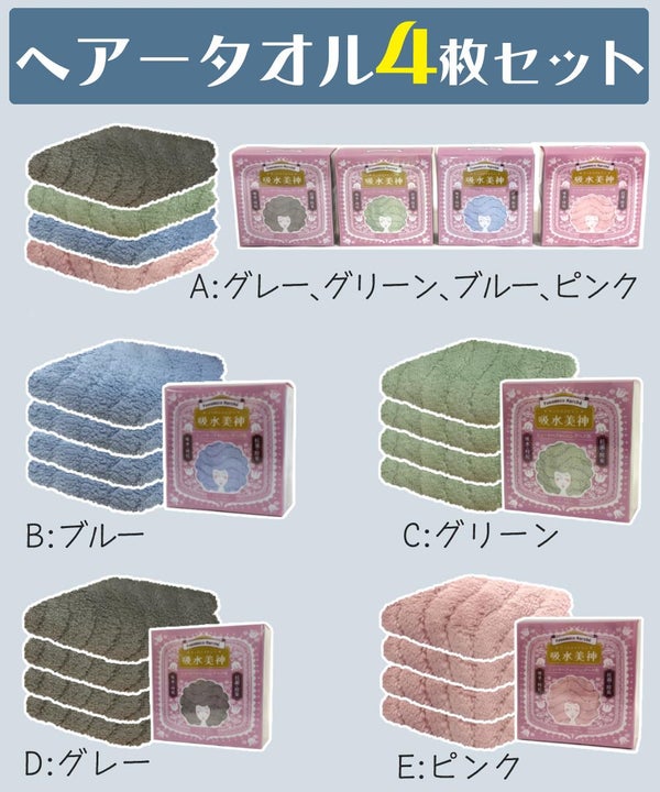 【 ふわもこマルシェ 吸水美神 FM -801 ヘアータオル4枚セット】