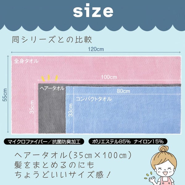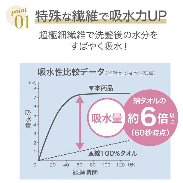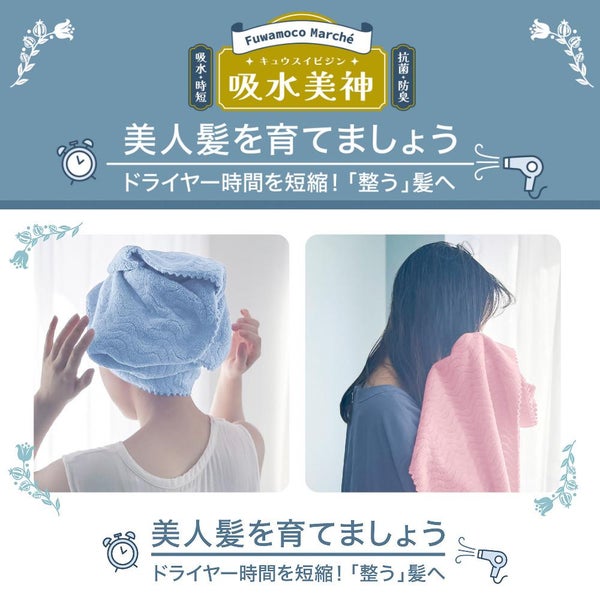 「吸水美神」ヘアータオルは、忙しい毎日でも美しい髪を保ちたいあなたの味方です。超極細繊維が洗髪後の水分を素早く吸収し、ドライヤー時間を短縮。カットパイル仕上げで髪や肌に優しく、抗菌・防臭加工で清潔さもキープします。
