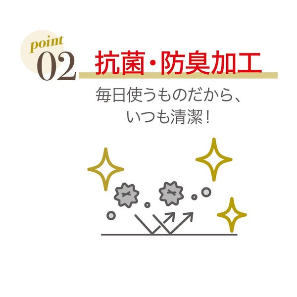 | 特長 | ・マイクロファイバー ・ポリエステル85%、ナイロン15% ・中国製 ・抗菌防臭加工 |
