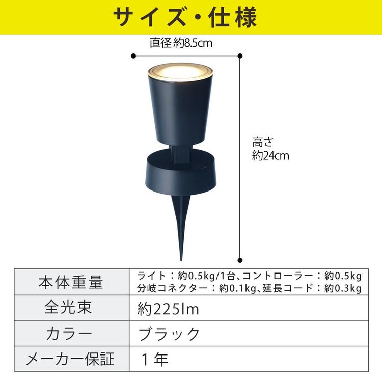 | 備考 | 使用環境:屋外 防水性:IPX3 全光束:約225lm 本体カラー:ブラック |