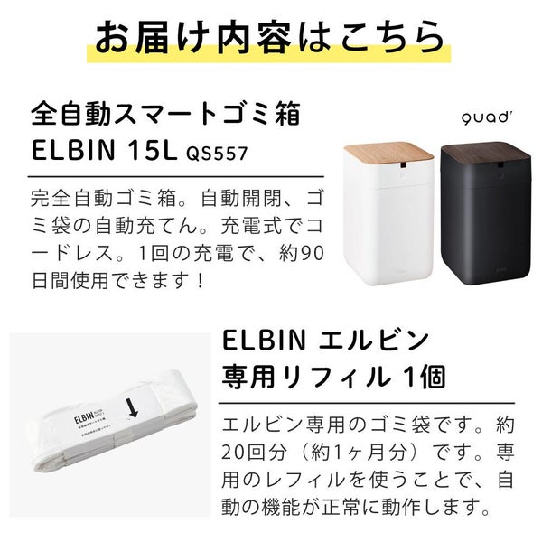 | 2)QUADS 全自動スマートゴミ箱 ELBIN 専用 ゴミ袋 1個 |
