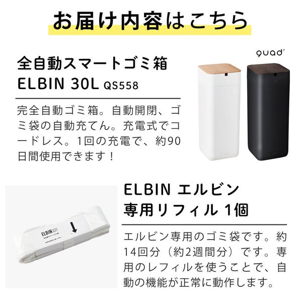 1)QUADS 全自動スマートゴミ箱 30L ELBIN エルビン QS558 (カラー選択)
