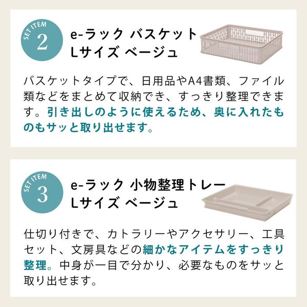 バスケット・小物整理トレー付きの充実した3点セットで、収納力も使い勝手もアップ。