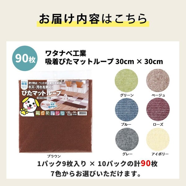 | ワタナベ工業 吸着ぴたマットループ 30cm × 30cm 9枚入り 日本製 10パック(90枚) |