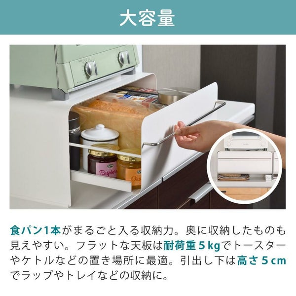 フラットな天板は耐荷重5kg。 トースターやケトルなどの置き場所に最適。