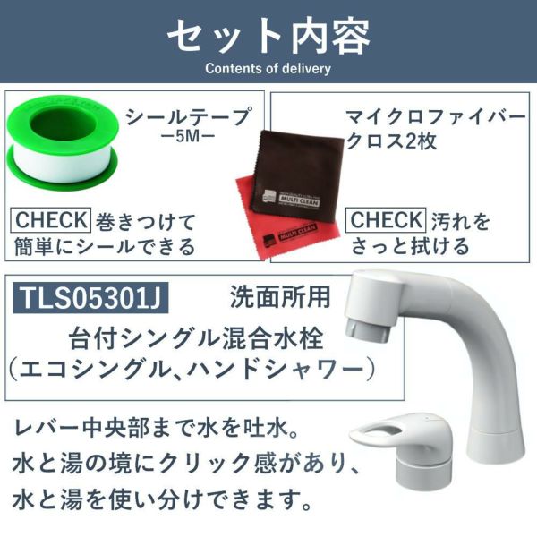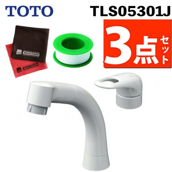 TOTO 洗面水栓 シングル混合水栓 TLS05301J テープ クロス付き 3点セット(ラッピング不可)