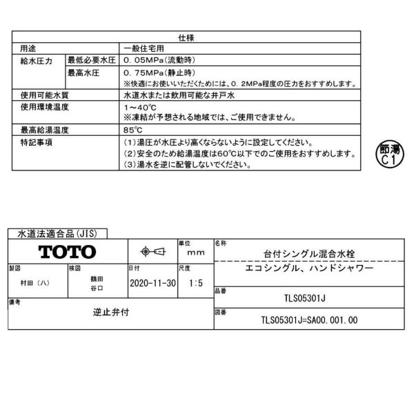 | 操作方法(水の出し方) | ハンドルを上下操作 | 機能部形状 | - |