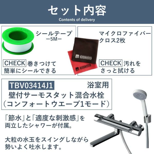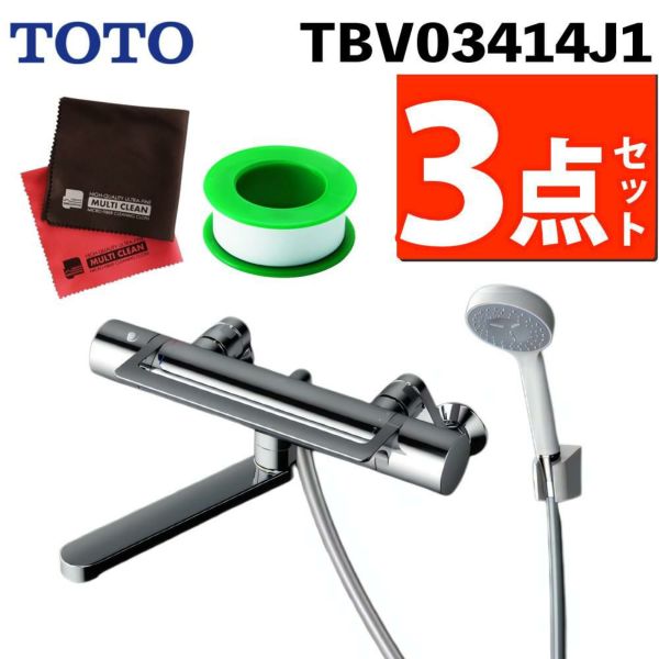 TOTO 壁付サーモスタット混合水栓(コンフォートウエーブ) TBV03414J1 テープ クロス付き 3点セット(ラッピング不可)