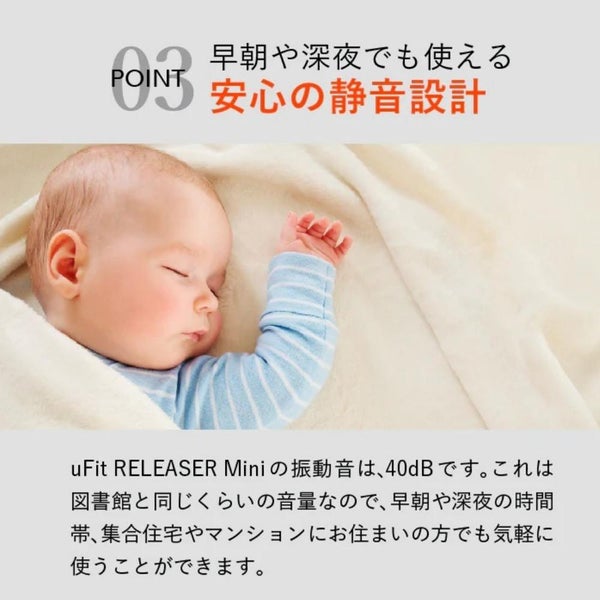 | 梱包内容 | uFit RELEASER Mini本体、アタッチメント4種類、ユーザーマニュアル、収納ケース、Type-C充電ケーブル |