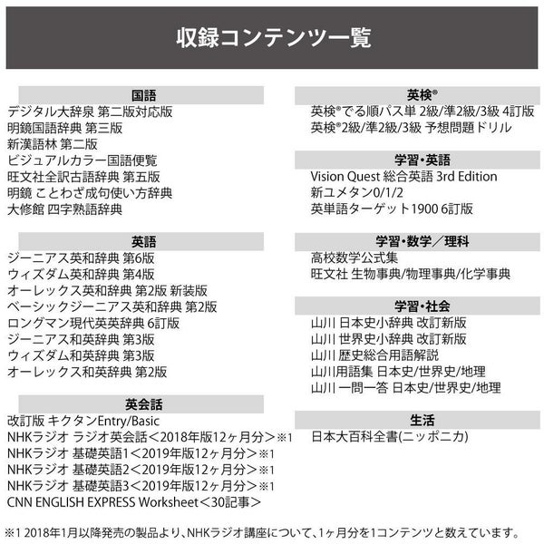 ※1 2018年1月以降発売の製品より、NHKラジオ講座について、1ヶ月分を1コンテンツと数えています。