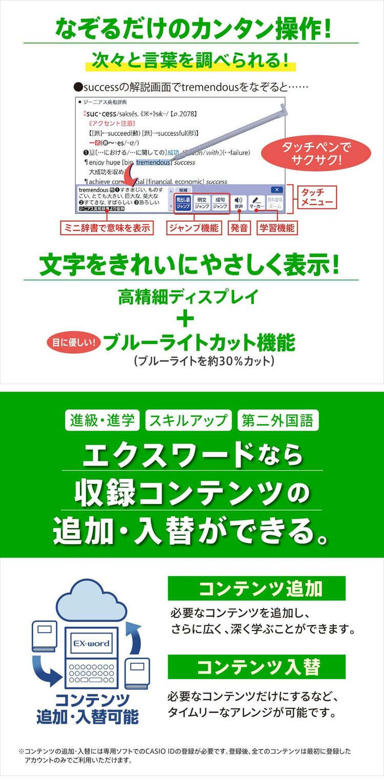 アフターコンテンツは、電子辞書ご購入後にお客様ご自身で電子辞書本体にダウンロードをしてご利用ください。