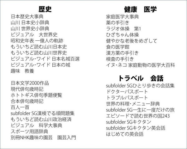 教養、趣味に幅広く役立つ日本語コンテンツと、基礎的な英語学習に最適なコンテンツを収録。