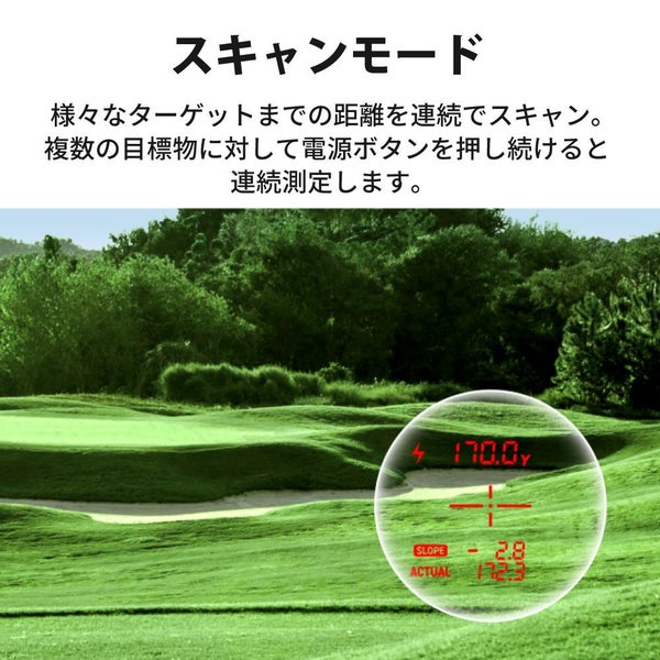 様々なターゲットまでの距離を連続でスキャン。複数の目標物に対して電源ボタンを押し続けると連続測定します。